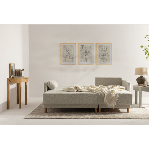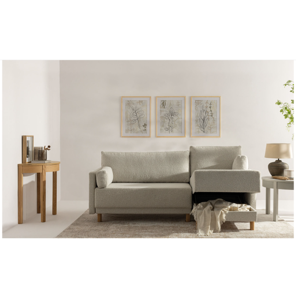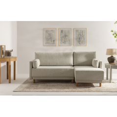 Komfortowy i kompaktowy narożnik z funkcją spania. Dzięki dwóm wariantom nóżek możesz dopasować go do swojego wnętrza, a dwa praktyczne pojemniki do przechowywania sprawią, że twój salon będzie jeszcze bardziej funkcjonalny.