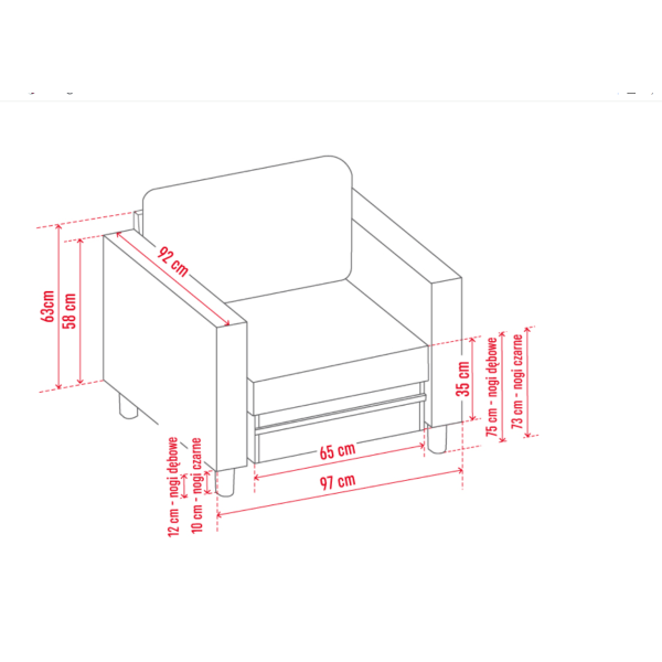 - Miękka poduszka zapewnia wygodne oparcie dla pleców. Komfort wypoczynku podnoszą zaokrąglone podłokietniki.