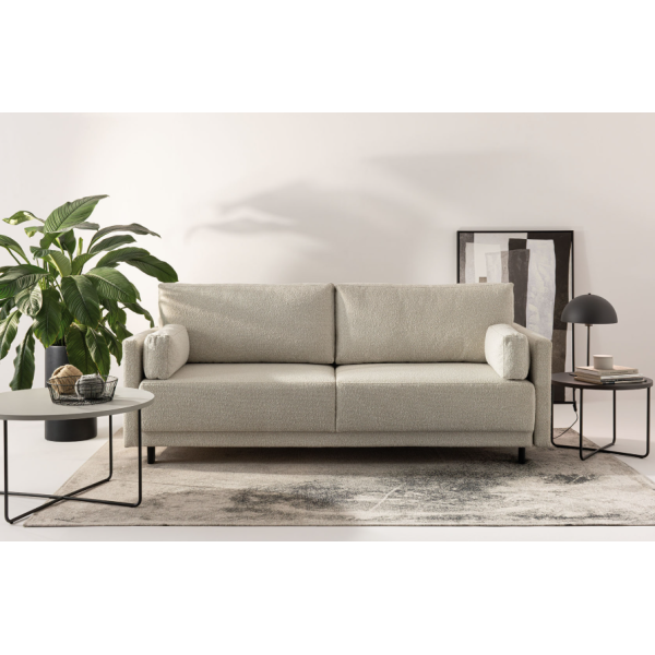 Komfortowa i kompaktowa sofa z funkcją spania. Dzięki dwóm wariantom nóżek możesz dopasować go do swojego wnętrza, a praktyczny pojemnik do przechowywani sprawią, że twój salon będzie jeszcze bardziej funkcjonalny.